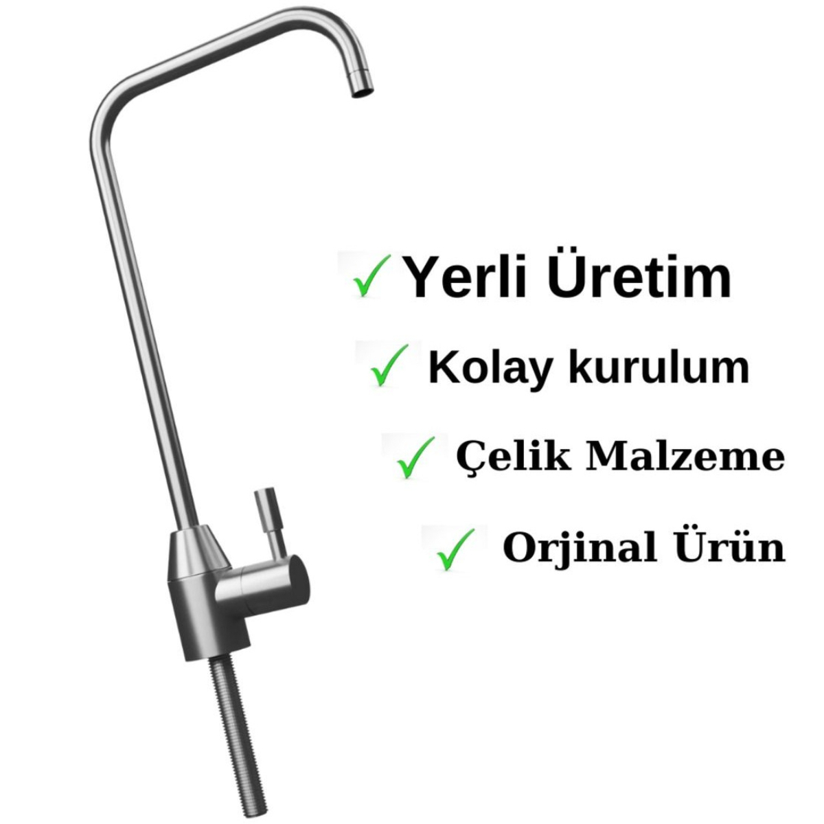 Paslanmaz çelik su arıtma muslukları, dayanıklılığı ve modern tasarımıyla hem mutfaklara şıklık katar hem de suyun kalitesini korur. Uzun ömürlü yapısı sayesinde korozyona dayanıklıdır, bakteri birikimini önler ve %100 sağlıklı içme suyu sağlar. Mutfakta hem estetik hem de güvenilirlik isteyenler için idealdir.